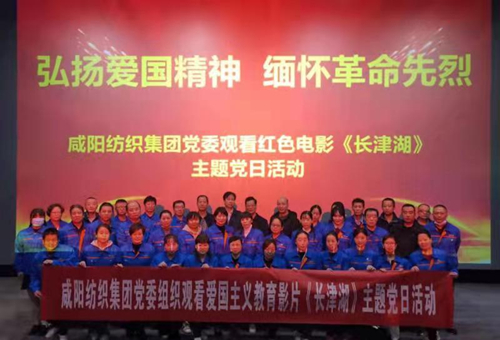 | 為弘揚(yáng)愛國主義精神,激發(fā)干部職工的愛國熱情及責(zé)任擔(dān)當(dāng)意識(shí),賡續(xù)紅色血脈,推進(jìn)黨史教育走深走實(shí)。10月16日上午,咸陽紡織集團(tuán)組織黨員干部職工共同觀看愛國主義教育影片《長(zhǎng)津湖》,銘記偉大歷史,緬懷革命先烈,致敬英雄先輩。