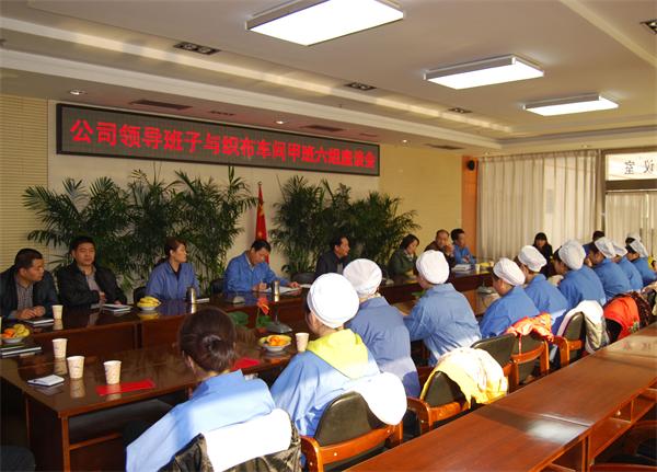 圖二:西北二棉領(lǐng)導(dǎo)班子與織布車間甲班六組進(jìn)行座談 |